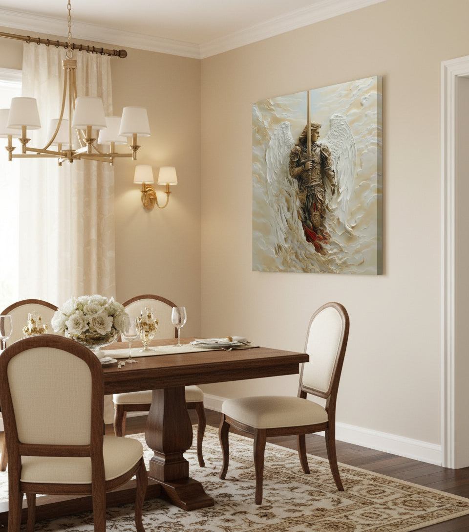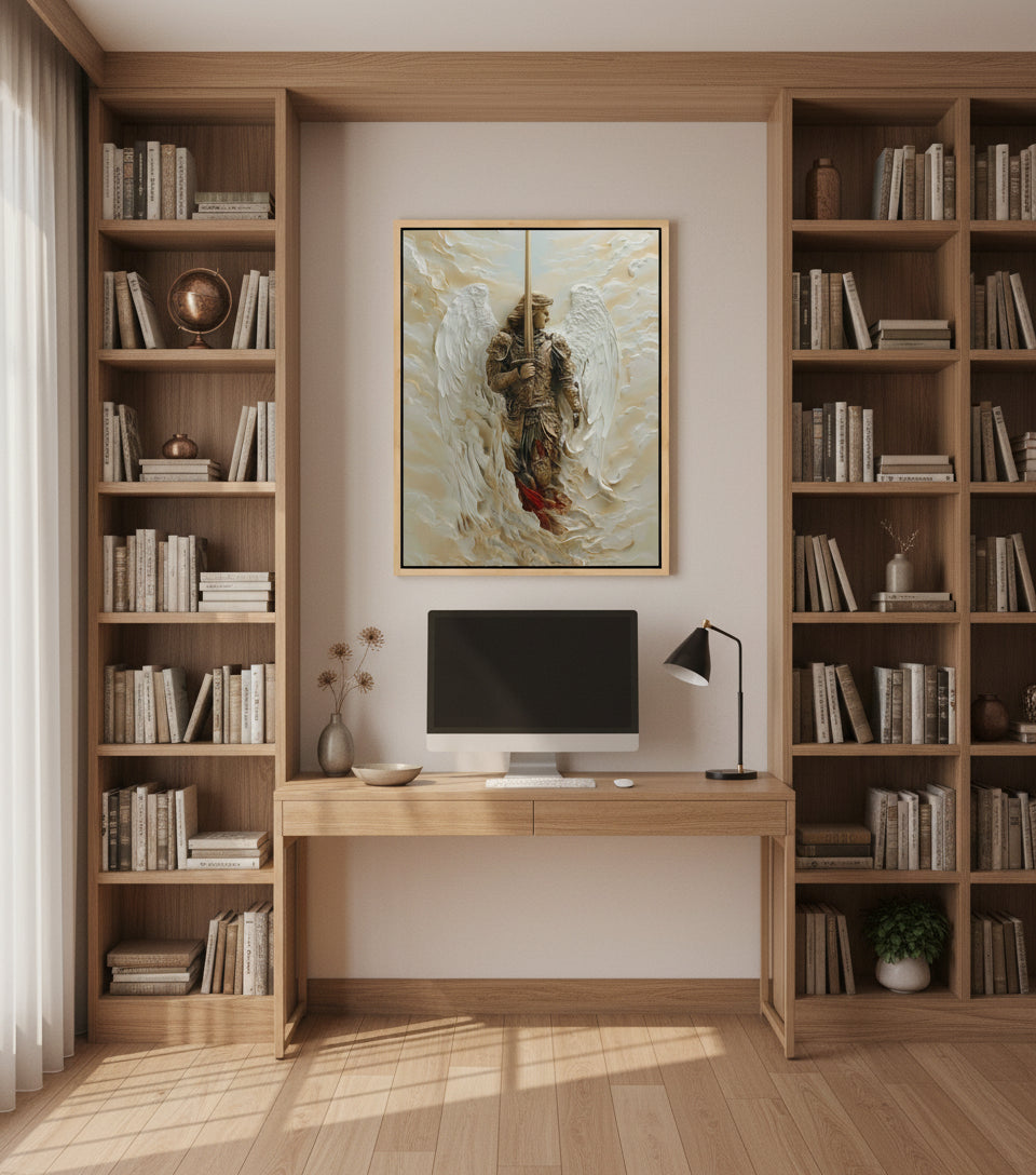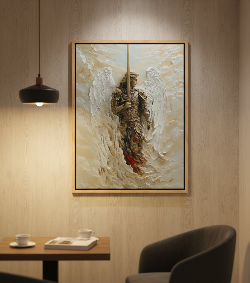 This powerful Archangel Warrior Canvas Art captures the divine strength and heavenly authority of God’s messenger. The artwork portrays a majestic angel descending through clouds, holding a sword of justice, symbolizing protection, righteousness, and victory over darkness. Perfect for Christian home décor, prayer rooms, offices, meeting rooms, and spiritual spaces seeking peace and inspiration. Crafted for believers who desire a visual reminder of God’s faithful protection, this canvas also makes a meaningful gift for loved ones — encouraging courage, faith, and steadfast hope.
