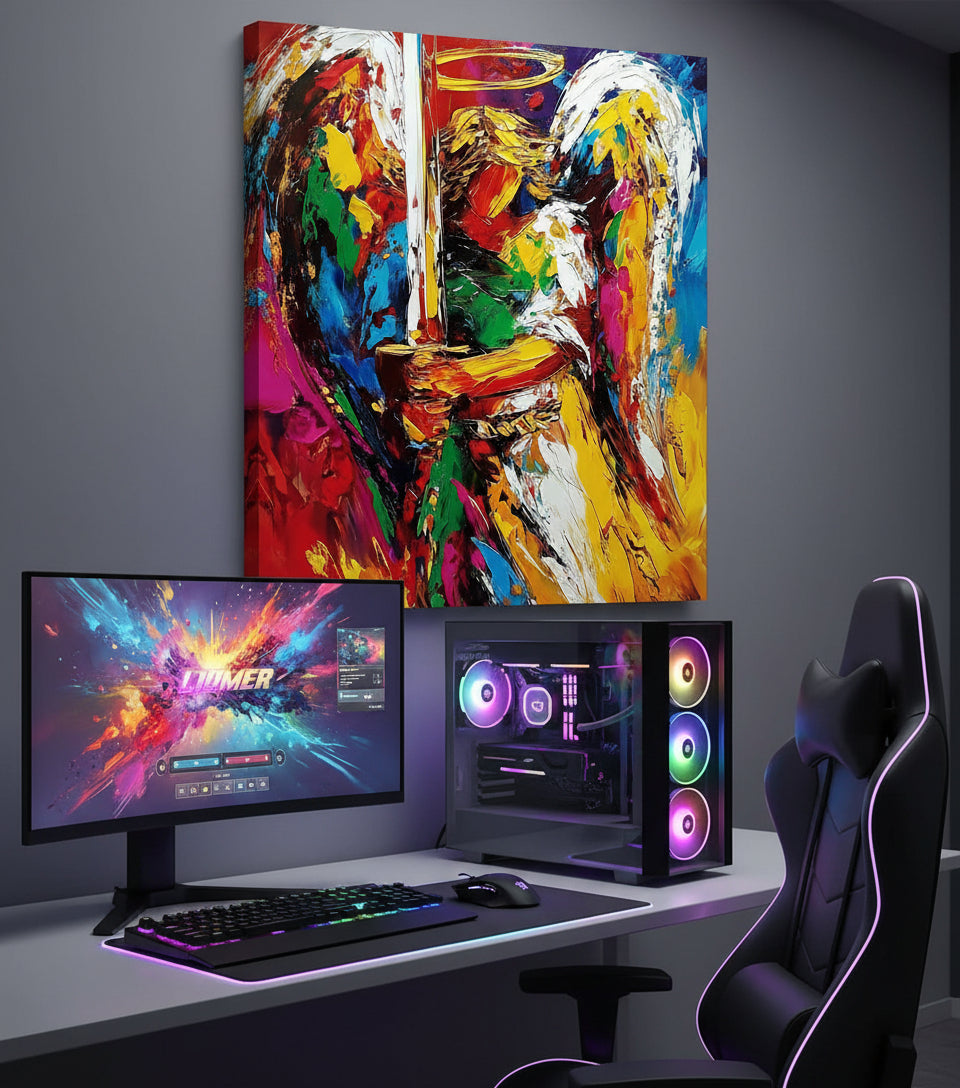 Bring heavenly protection and divine strength into your home with this Guardian Angel Warrior Canvas Wall Art.