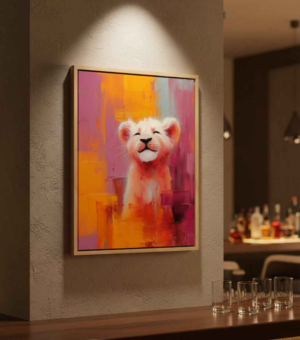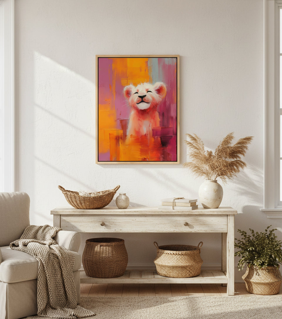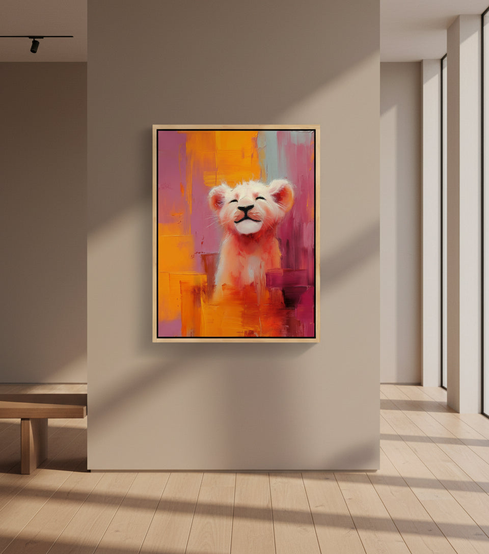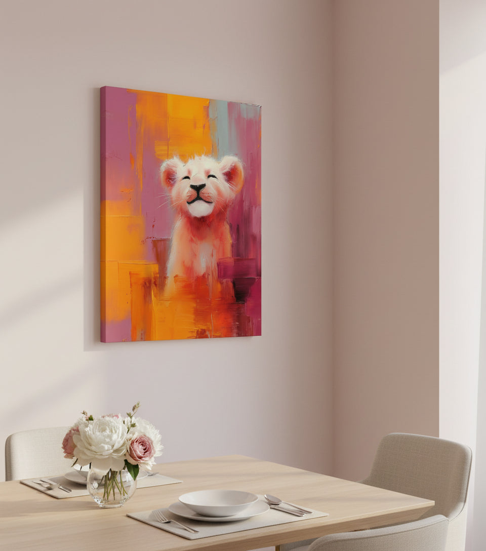 This adorable “Little Lion of Joy” canvas captures the pure happiness of a smiling lion cub painted in soft, dreamy colors.