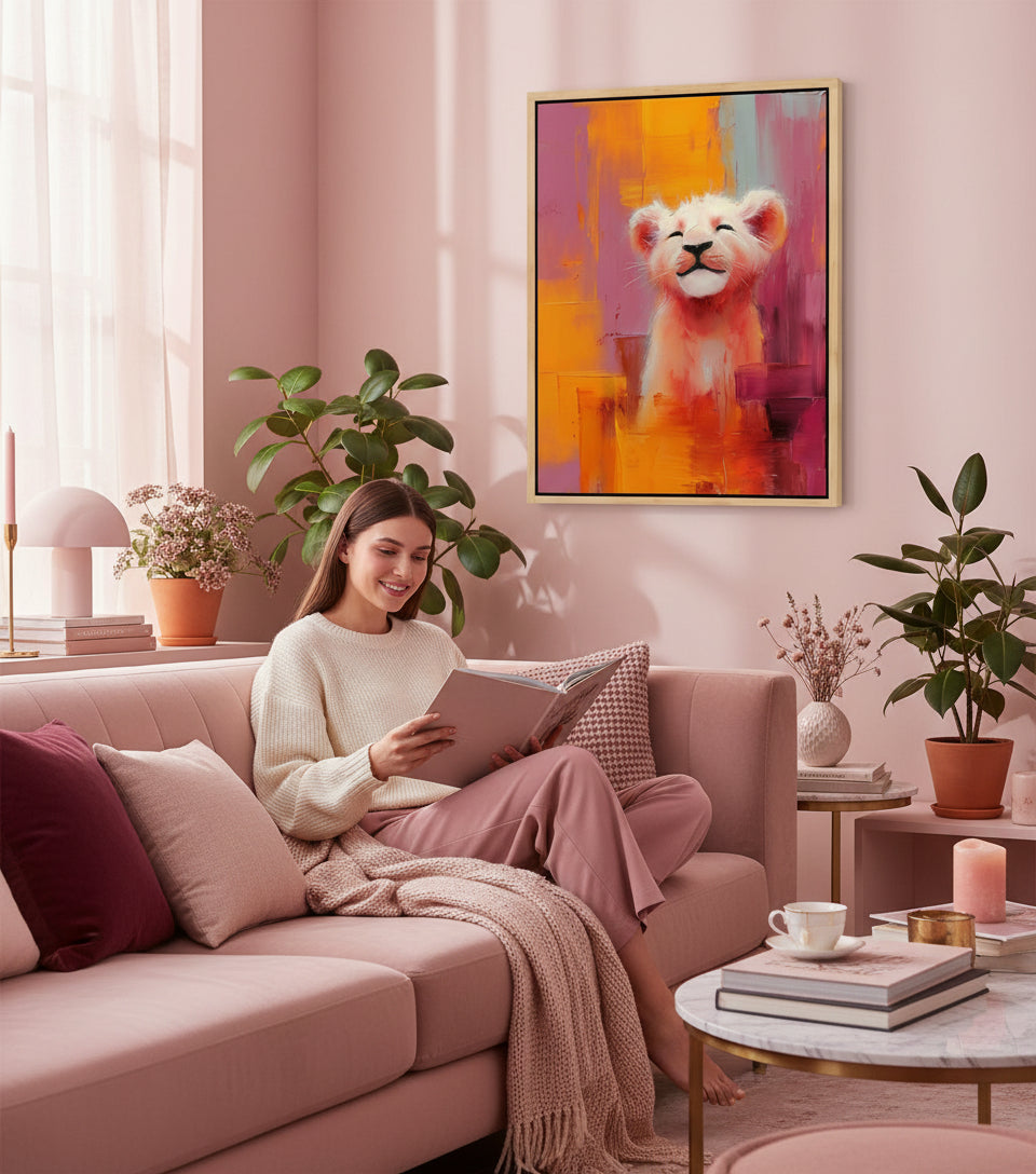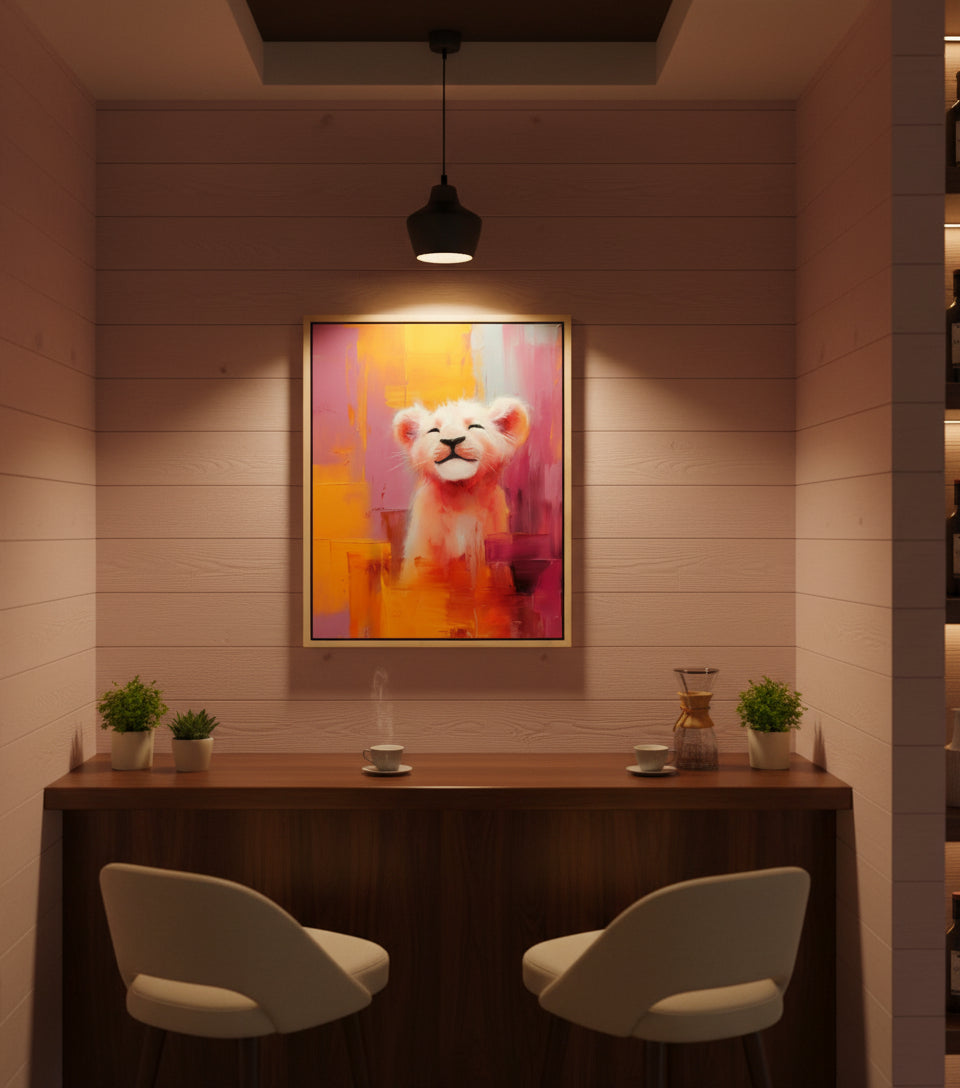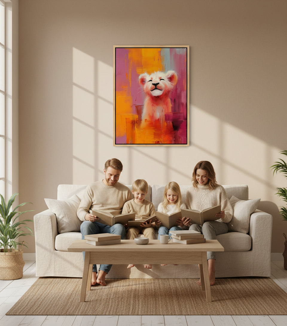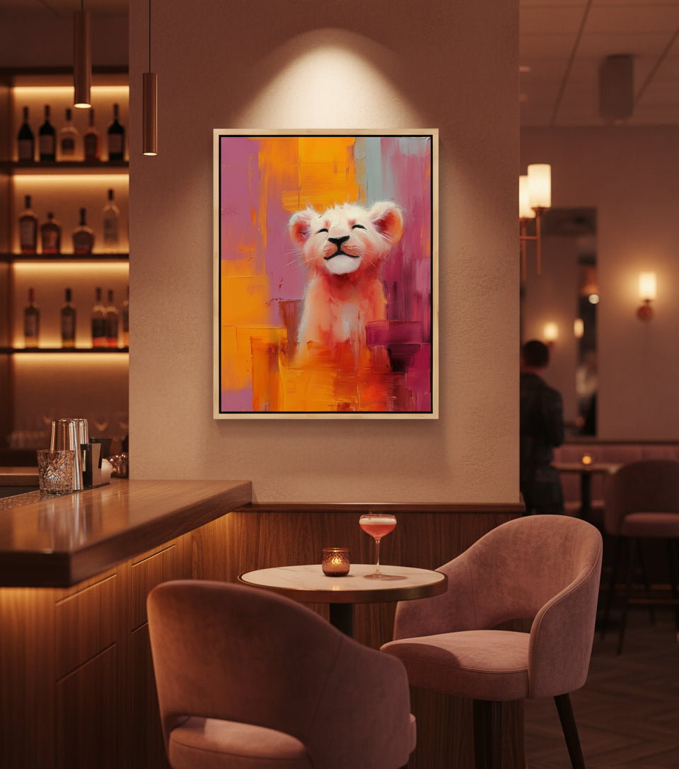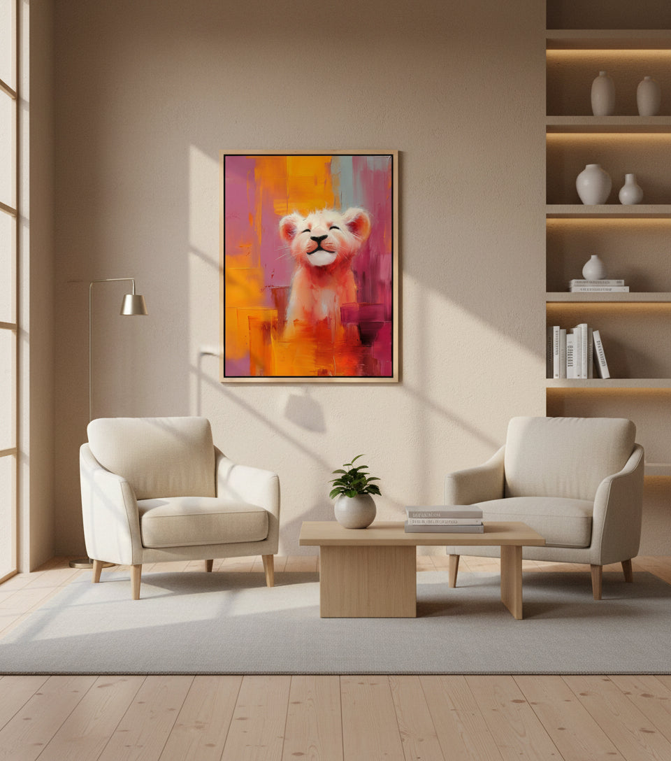 This adorable “Little Lion of Joy” canvas captures the pure happiness of a smiling lion cub painted in soft, dreamy colors.